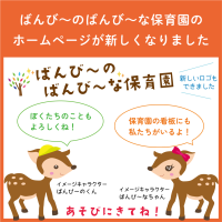 保育園のホームページが新しくなりました!https://tango-nonno-nonna.com/hoiku/info/保育園の看板にも登場しているばんび~のくんとばんび~のちゃんがいますので、覗...
