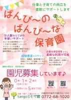保育園では、随時園児を募集しています。職場復帰をしたい保護者の方は、年度途中であってもお子様を預けていただけますので、是非ご検討ください。また、急な用事やリ...