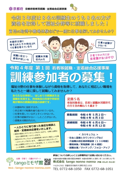 2022.05.02 今年1回目の訓練生募集を開始します😊 今年も「若者等就職・定着総合応援事業」を実施します!第1回目の訓練生を募集開始しました。ホームページからの問い合わせも受付けていますので是非どうぞ。第2回目は9月頃に予定しております。 就職氷河期世代の方で最終学歴年が制度に該当する方には給付金があります。詳しくはお問合せください。